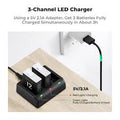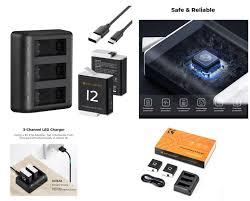- * 3-Channel LED Charger. Portable and easy-to-use 3-channel LED charger for GoPro Hero 9/10/11/12 batteries, which can charge 3 batteries individually or simultaneously. Each channel has indicator light.