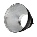 The 7″ Standard Reflector features a Bowens S-style mount, allowing it to fit studio strobes, location battery strobes, LED monolights, and select fluorescent light units which receive Bowens modifiers. The reflector is made of lightweight but sturdy aluminum, with a textured silver interior for even light spread. An oblong hole in the bowl allows the reflector to be used together with an umbrella or other shafted modifier.