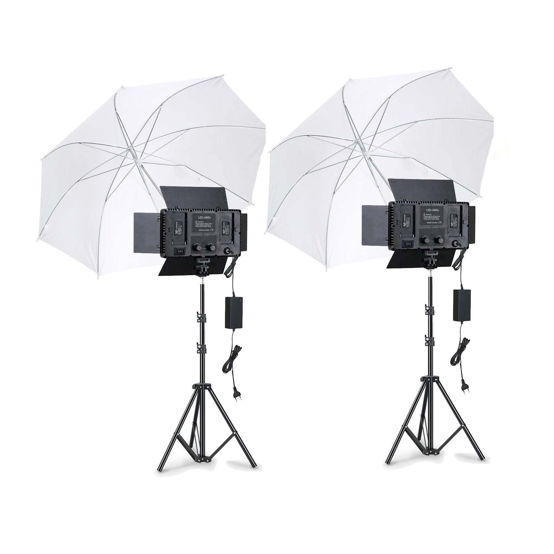 2x 7Foot Adjustable Stand 2xU600+ LED Light with power adapter 2xWhite Umbrella 2xUmbrella Holder For Stand