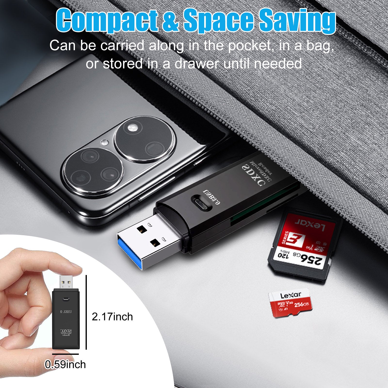 - Wide Compatibility: Supports SDXC/SDHC/SD/Micro SD/TF /Micro SDXC/Micro SDHC/UHS-I memory cards