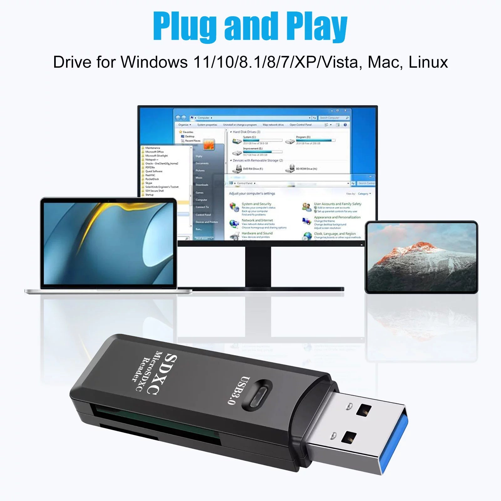 USB 3.0 Card Reader, Supports SD/Micro SD/SDHC/SDXC/MMC, Mini Camera Flash Reader Compatible with Windows, Mac, Linux